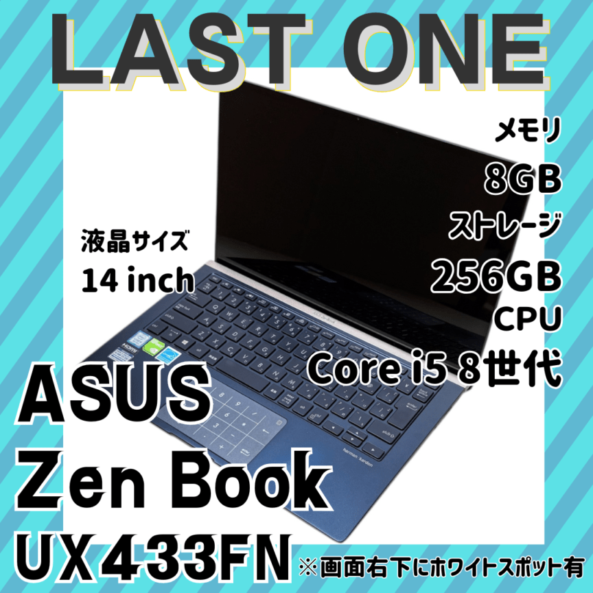 ★数量限定早い者勝ち★corei5-8世代/メモリ8GB/SSD256GB/ASUS【ZenBook UX433FN】/中古 ノートパソコン2026.1.14